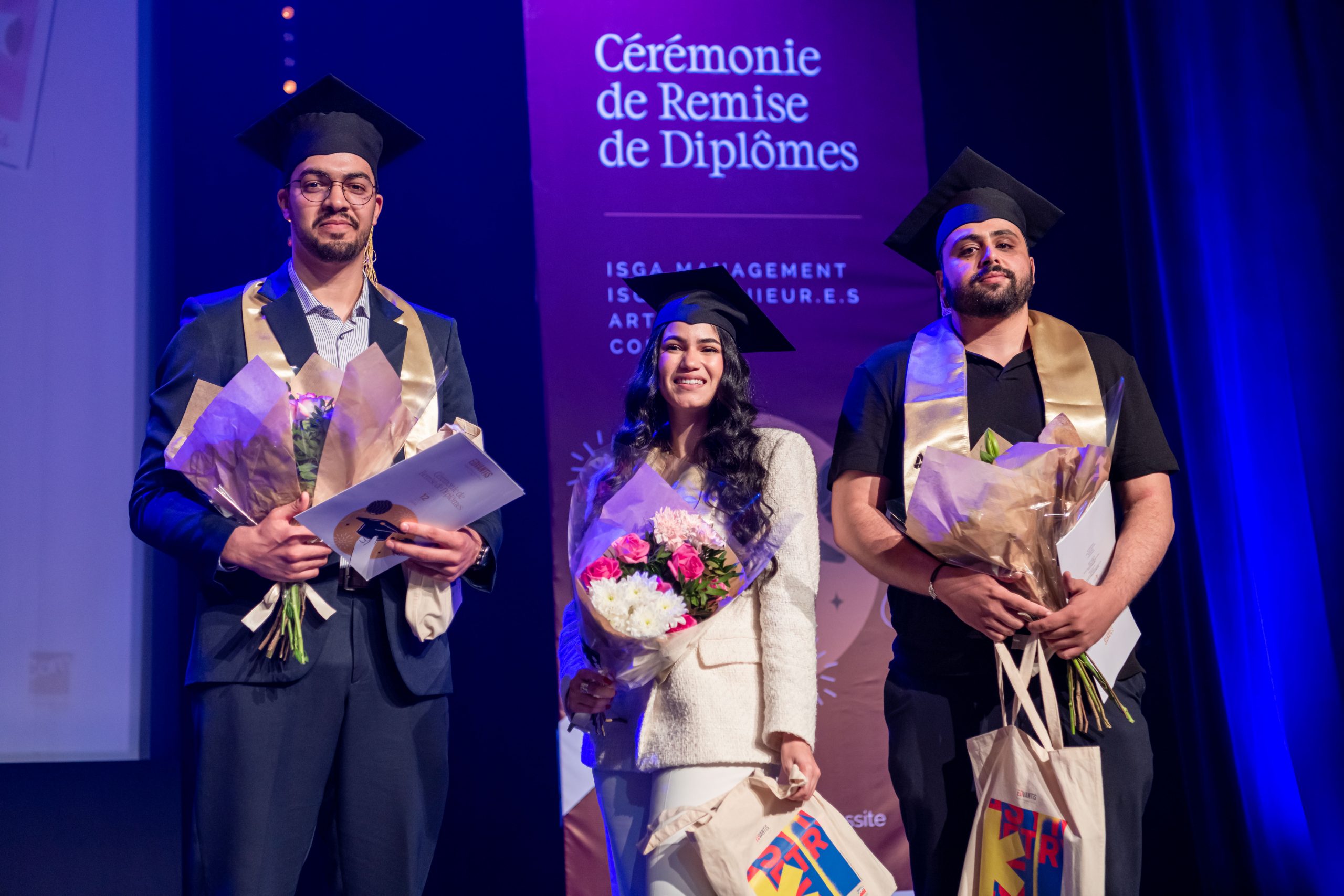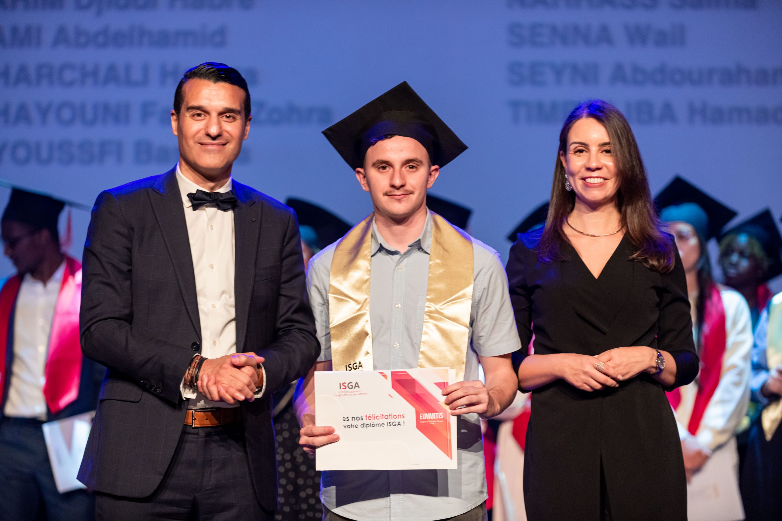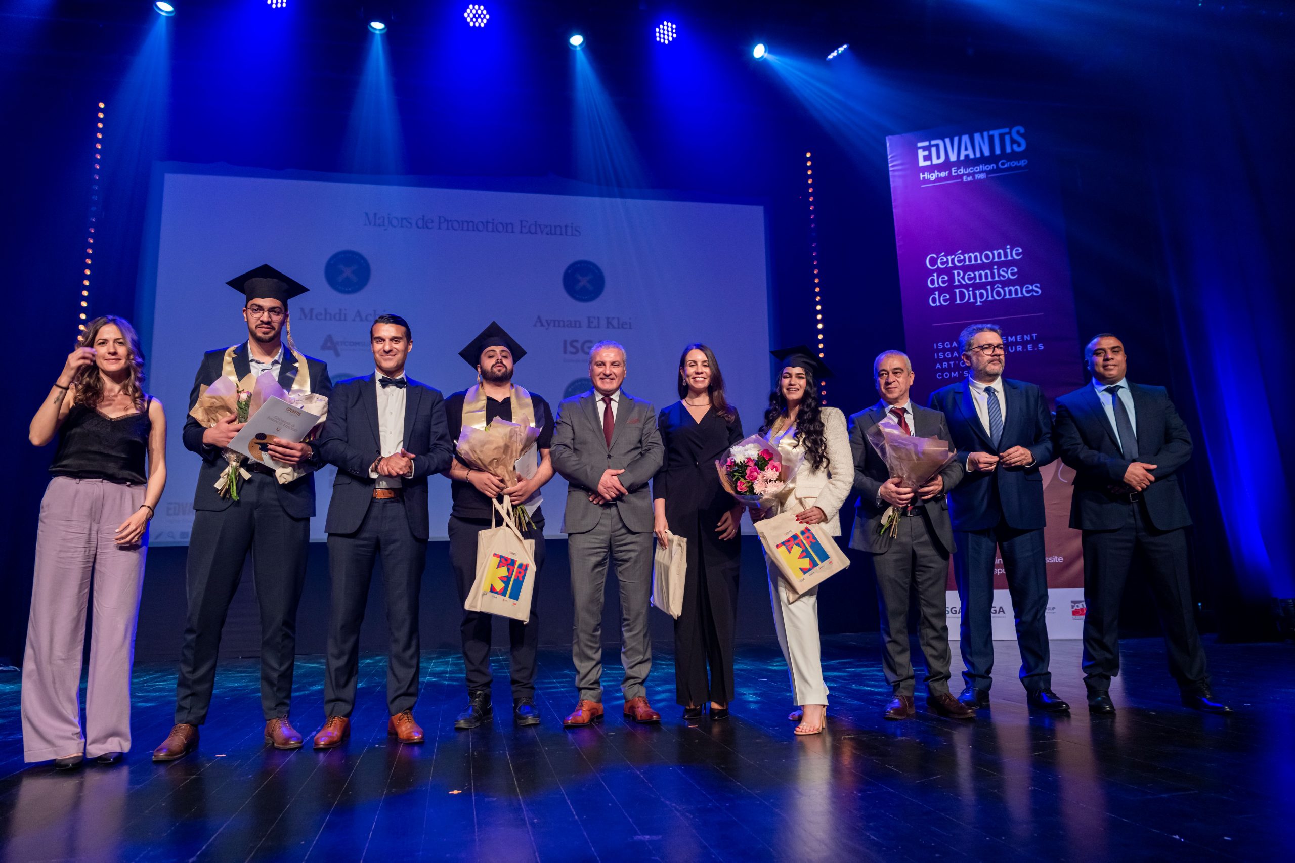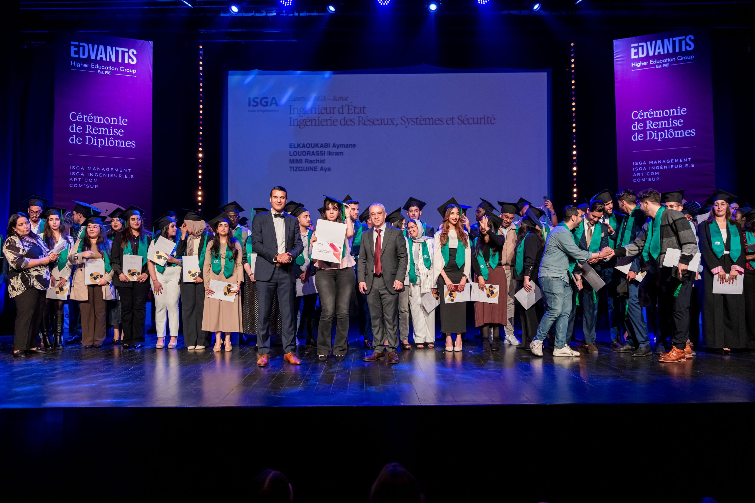 La cérémonie, animée par Layla Medkouri, directrice du campus Art’Com Casablanca, et Allal Alain Difafi, directeur de l’école de Management – ISGA Rabat, a réuni une foule enthousiaste. Le parrain de la promotion 2024, Youssef Cheikhi, Président du Gam, le Dr. Tawhid CHTIOUI, Président du Groupe Edvantis, ainsi que toutes les équipes pédagogiques et administratives étaient présents pour partager ce moment de joie avec les lauréats.