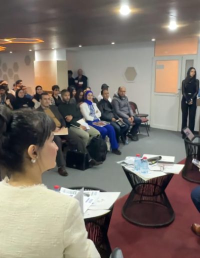 Des figures influentes du monde académique et entrepreneurial ont enrichi les échanges, notamment Mohammed Rida NOUR, président du CMEADD, Siham AMMARI, directrice pédagogique de l’ISGA-Fès, ainsi que Meryem LAKHDAR, vice-présidente du CMEADD et professeure à la FSJES-Fès, Fatima Zahra RAIS, professeure à l’ISGA, Loubna KARROUM, directrice générale de KARDEV et figure influente du Forum Africain des Énergies Renouvelables, et Kaoutar LAHMADI.