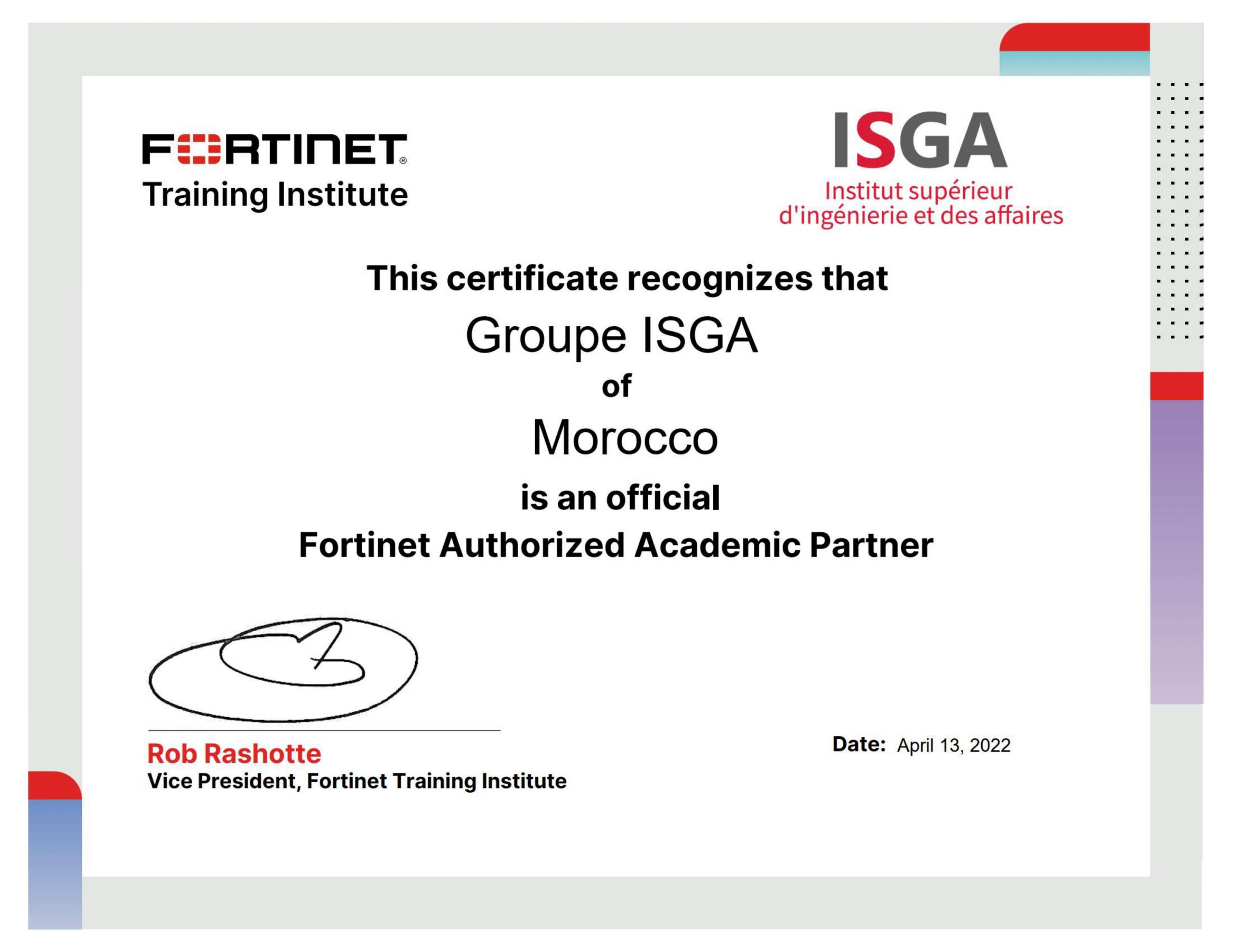 Network Security Technology Foundation, Network Security Core Solutions, Network Security Advanced Solution, FortiGate Network Security Professional, FortiGate Network Security Management and Analysis, Fortinet Advanced Products Professional, Fortinet Troubleshooting Professional, Fortinet Network Security Expert, un total de huit certifications sera mis à disposition des ISGAistes pour les permettre d’acquérir les meilleures performances en cybersécurité.