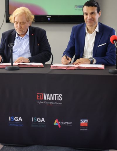 Le jeudi 10 avril dernier, Edvantis a accueilli sur son campus d’Art’Com Sup une quinzaine de partenaires — entreprises et établissements académiques — pour une cérémonie dédiée à la signature de conventions stratégiques avec ses écoles Art’Com, Com’Sup, ISGA École d’ingénieur.e.s et ISGA École de Management. Une rencontre placée sous le signe de la collaboration, de l’engagement, et de l’avenir professionnel de nos étudiants.