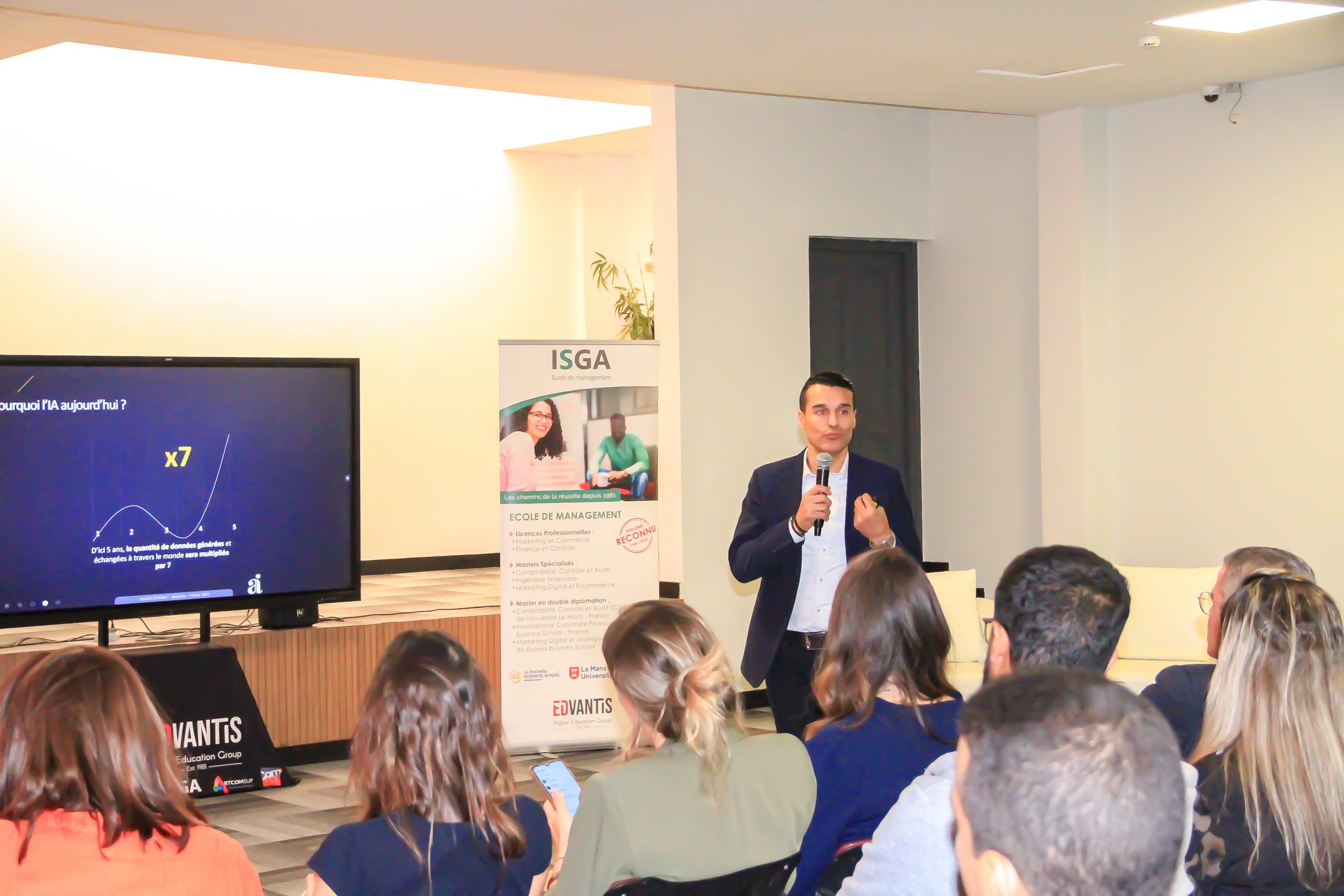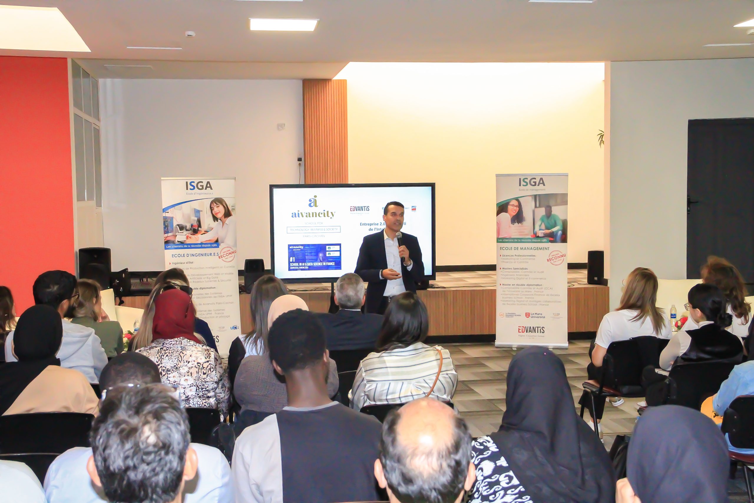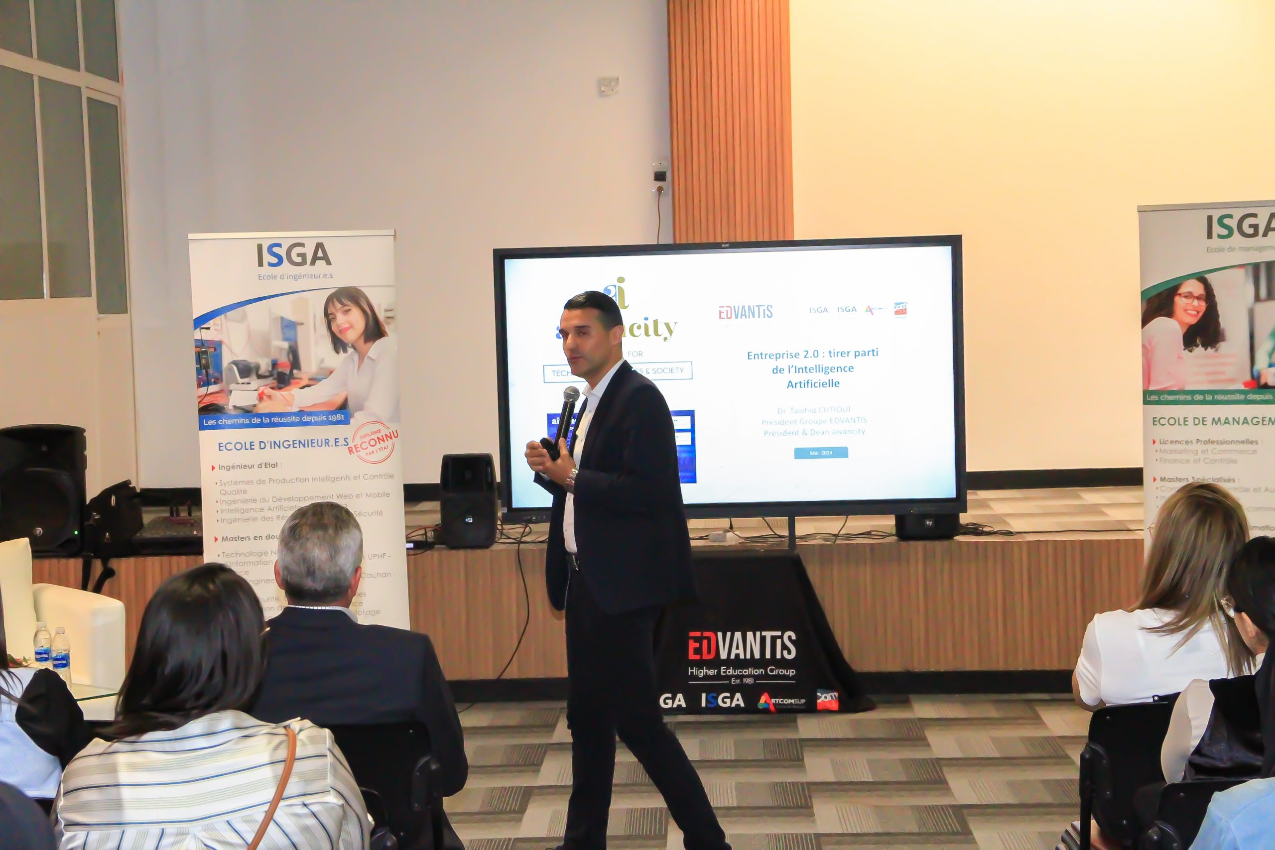 Tawhid Chtioui, président du groupe Edvantis, a animé une conférence sur le thème « Entreprise 2.0 : tirer parti de l’intelligence artificielle » à l’ISGA, campus de Marrakech.