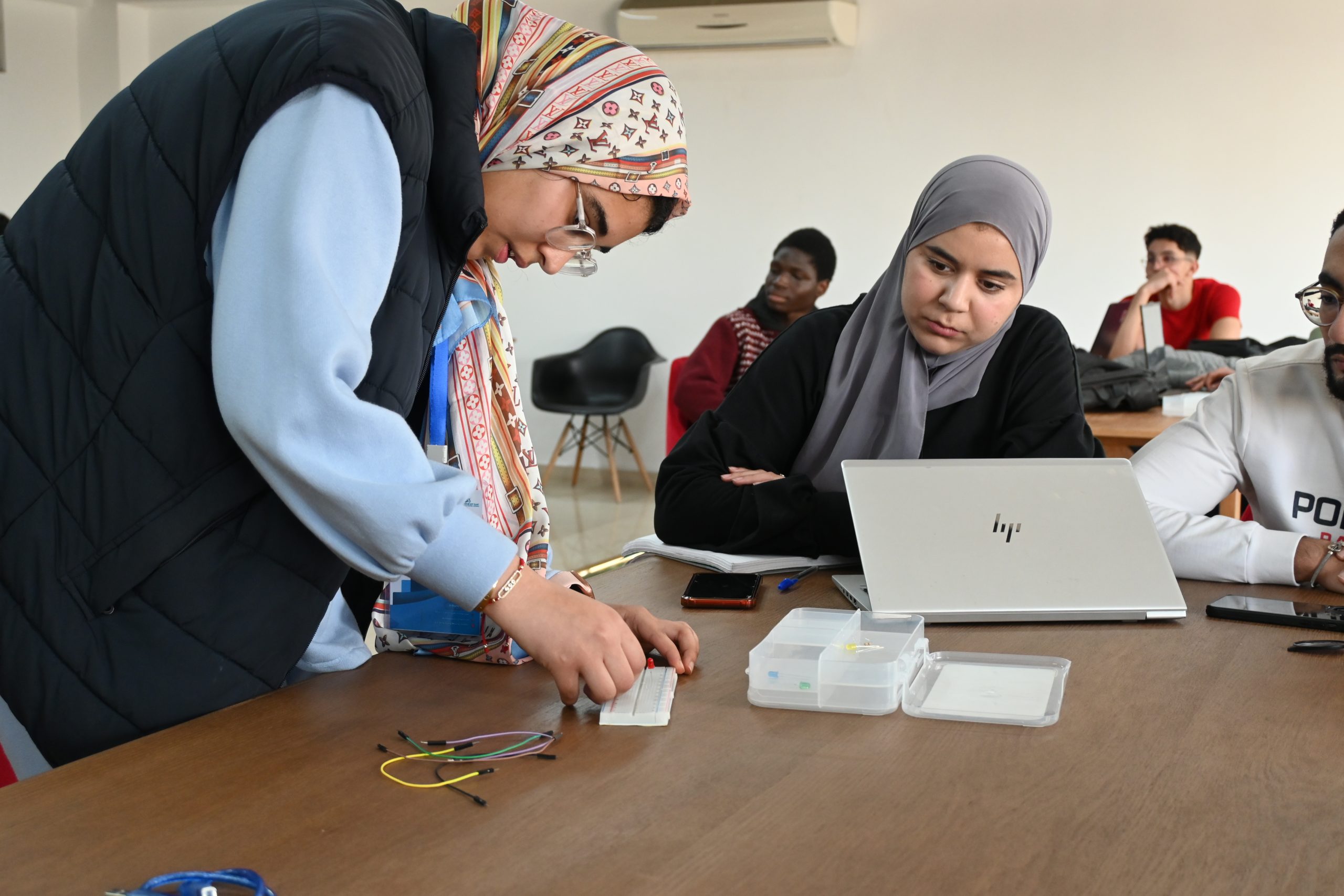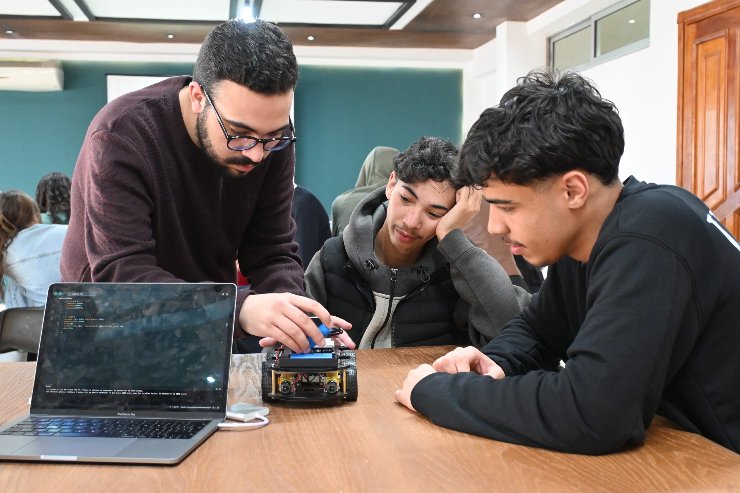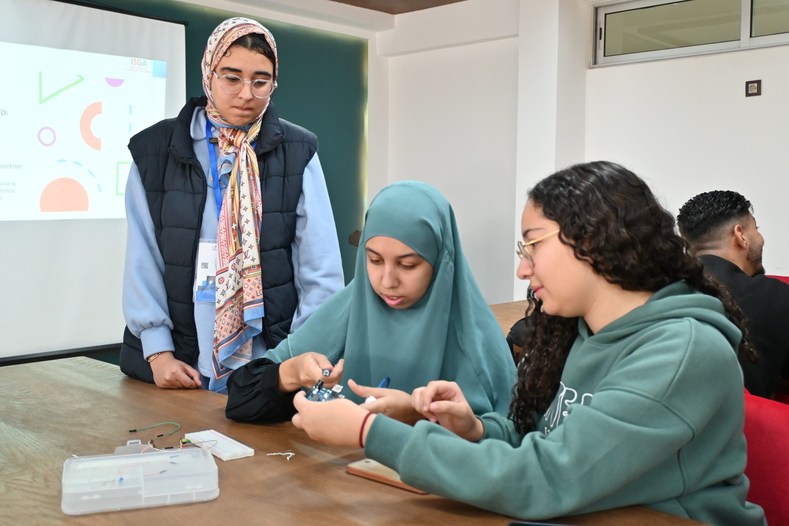 Sous la supervision de Ben Meziane Khaddouj, Professeure à l’ISGA Fès, et avec l’intervention de El Arbi Abdelaloui Alaoui, Professeur à l’ENS de Meknès, accompagné de son équipe, ce workshop a combiné approche théorique et application pratique. Les étudiants ont pu manipuler des composants électroniques, programmer des cartes embarquées et comprendre les enjeux des systèmes autonomes.