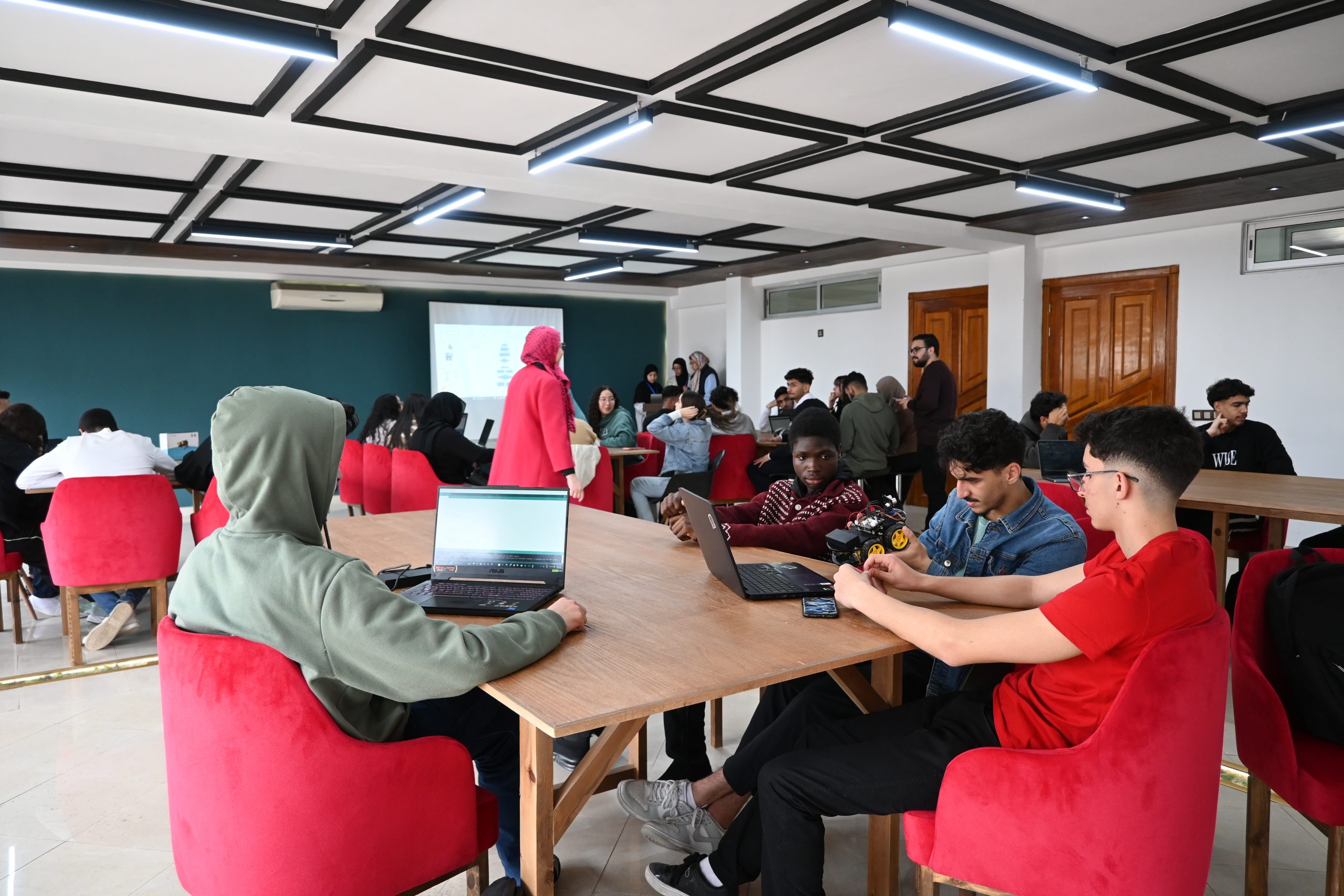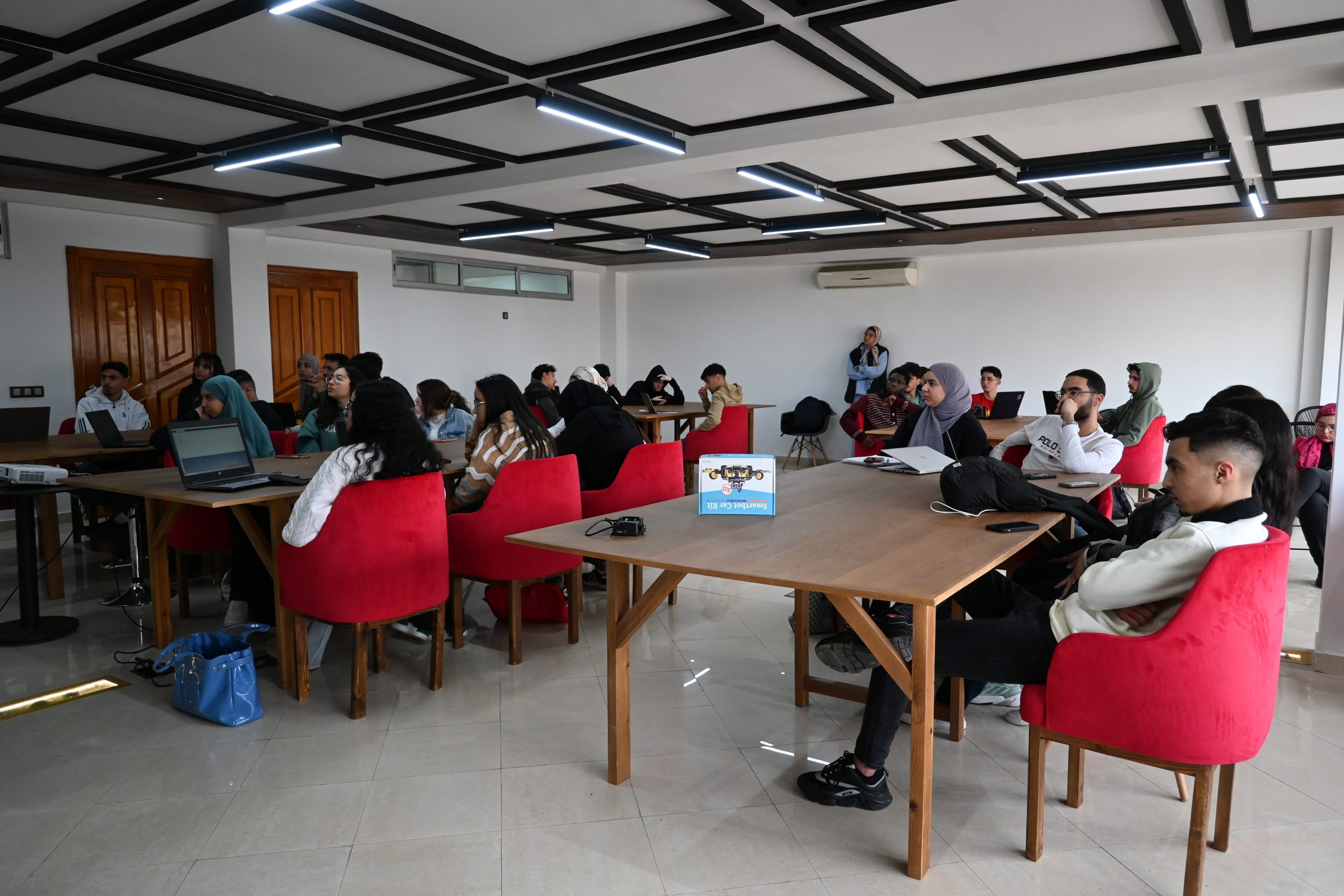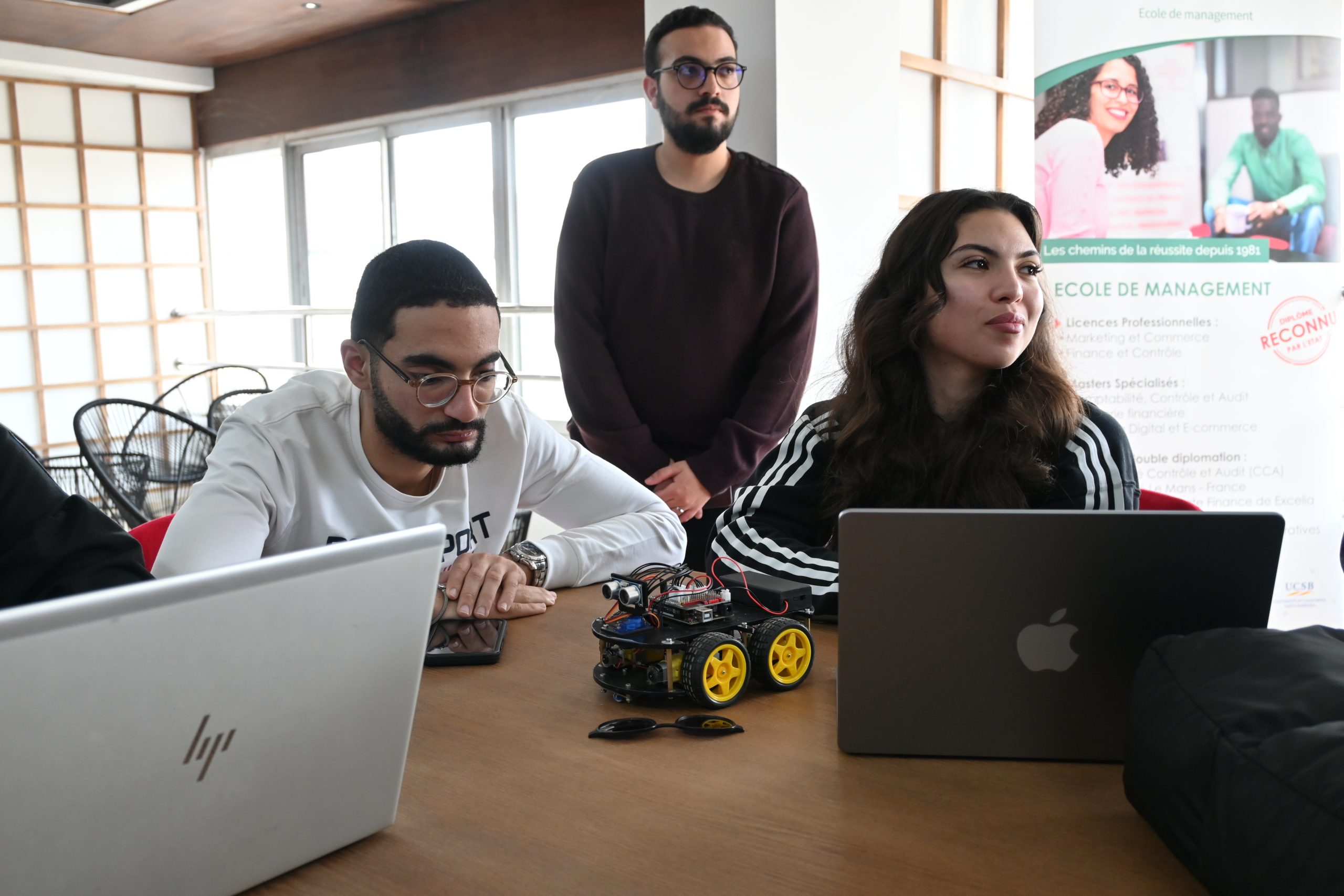 Sous la supervision de Ben Meziane Khaddouj, Professeure à l’ISGA Fès, et avec l’intervention de El Arbi Abdelaloui Alaoui, Professeur à l’ENS de Meknès, accompagné de son équipe, ce workshop a combiné approche théorique et application pratique. Les étudiants ont pu manipuler des composants électroniques, programmer des cartes embarquées et comprendre les enjeux des systèmes autonomes.